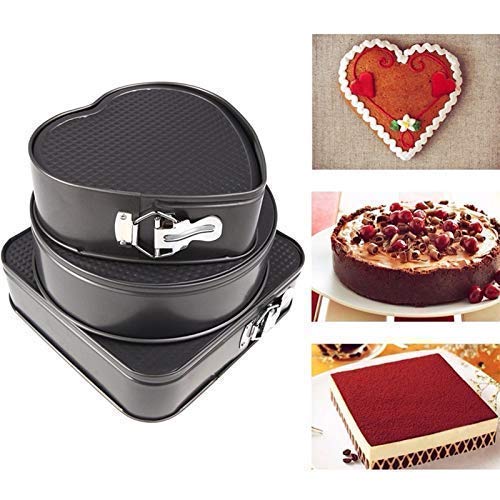 Dynore - قوالب كيك من دينور 3 قطع بأشكال مختلفة- صينية مطلية بالتفلون - خبز - قابلة للازالة - مجموعة سبيكة صلب رمادي
