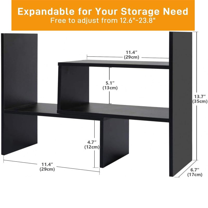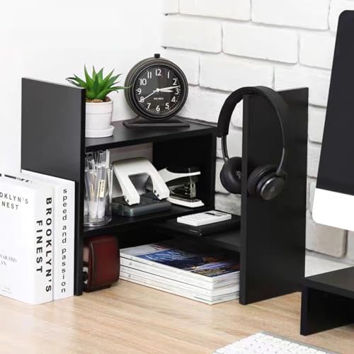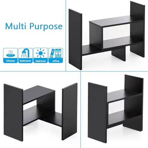 Dyserbuy - منظم أرفف لسطح المكتب رف عرض قابل للتوسيع من لوازم مكتب متعدد الاستخدامات بنمط حر للتعديل ديسرباي أسود غير لامع