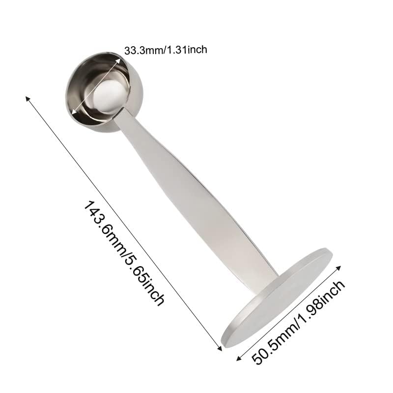 Dzxin - مغرفة قهوة 2 في 1 من دزكسين 2 #، 304 حامل من الستانلس ستيل، مغرفة قياس ومسحوق القهوة، ادوات ملعقة مكبس لضغط حبوب القهوة وطحن القهوة