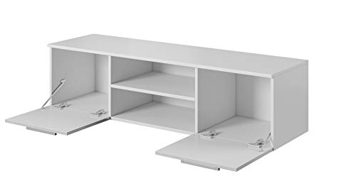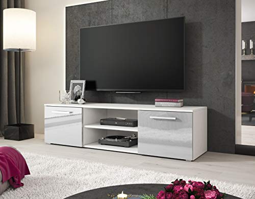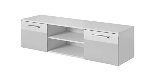 E-com - حامل دولاب تلفزيون من ألواح خشبية وخشب ليفي متوسط الكثافة من اي كوم، أبيض ورمادي، 140 سم