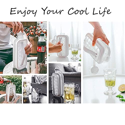 E-COSMOS - اداة صنع كرات الثلج من اي-كوزموس، زجاجة صانع الثلج المحمولة لعدد 17 مكعب ثلج، قوالب مكعبات الثلج، ابريق صنع كرات الثلج للمشروبات الروحية/ العصير/ القهوة (ابيض) (عبوة من 1 قطعة)