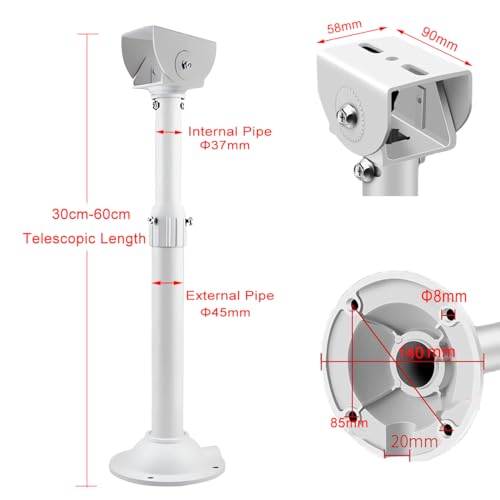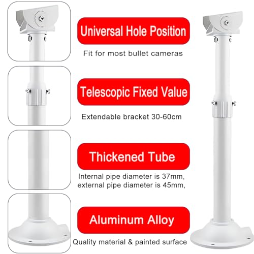 E-HORDE - دعامة تثبيت كاميرا مراقبة سي سي تي في قابلة للتمديد 30 سم - 60 سم بعمود تثبيت قابل للتعديل لكاميرات المراقبة بحامل ممتد للتثبيت على الحائط والسقف (نوع I)