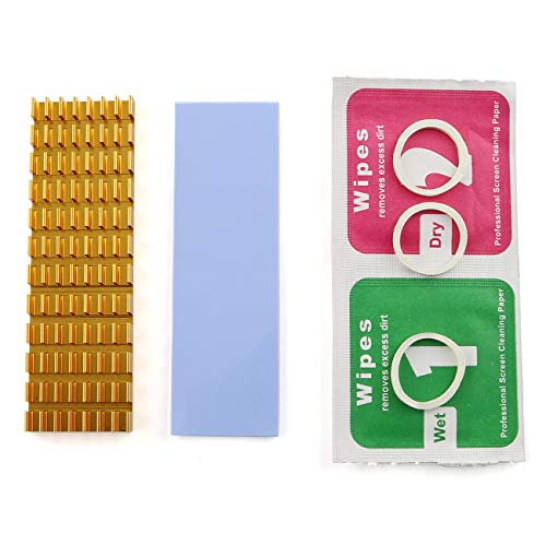 - اللون: ذهبي. الكمية: 2 قطعة من المشتت الحراري، 2 قطعة وسادة حرارية من السيليكون، 2 قطعة مجموعة التنظيف الرطب والجاف، 6 قطع الشريط المطاطي