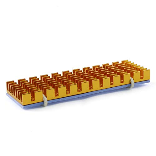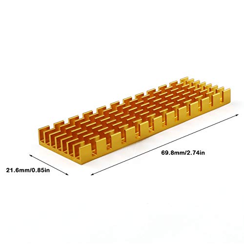 E-outstanding - مبدد حراري E- المعلقة 2 مجموعات 70x22x6mm مبرد تبريد سبائك الألومنيوم الذهبي مع وسادة حرارية من السيليكون وحقيبة تنظيف رطب - جاف لـ PCIe NVMe M.2 2280 SSD