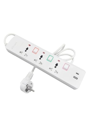 generic - مشترك كهرباء 16 امبير 3 مقابس خرج + 1 USB + 1 نوع سي 2.4 امبير - 1.5 متر مع مفتاح تشغيل وايقاف PS074 من اي-ترين - ابيض