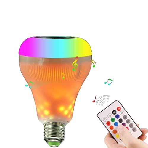 Spaceshoop - مصباح اضاءة LED E27 بتاثير لهب موسيقي، اضواء وميض ومكبر صوت بلوتوث واضاءة RGB متغيرة، ابيض، 20.0 واط