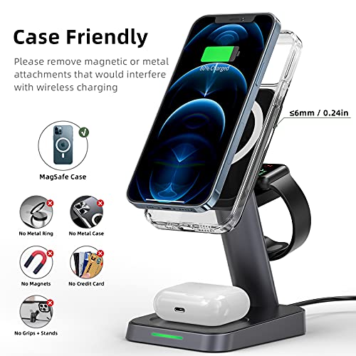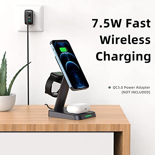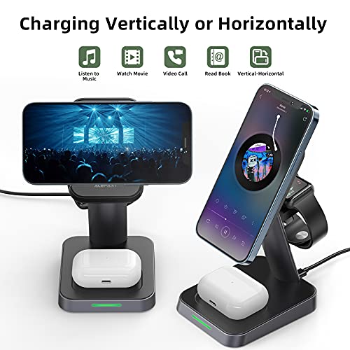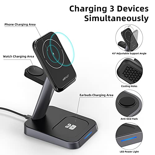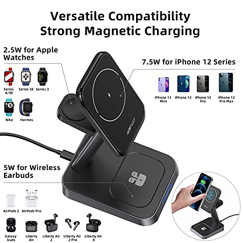 ACEFAST - حامل شاحن لاسلكي مغناطيسي 3 في 1 من ايه سي فاست، متوافق مع شاحن ماجسيف، قاعدة شحن سريع لسطح المكتب لايفون 12و12 برو و12 برو ماكس و12 ميني وايربودز 2 وايربودز برو وسلسلة اي-ووتش