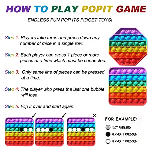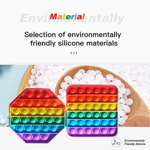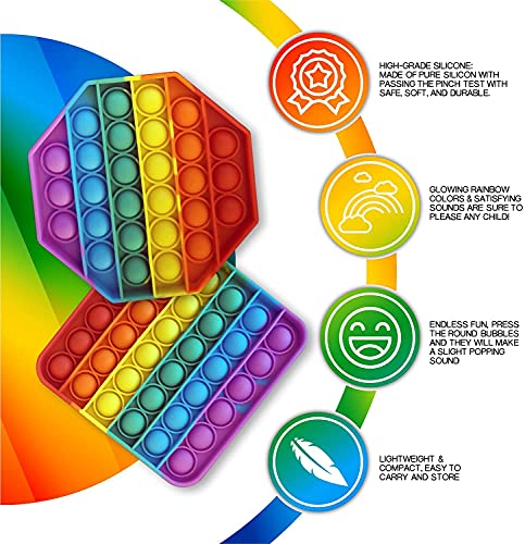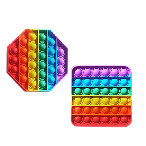EA Gift - لعبة فقاعات بتصميم منبثق من اي ايه، لعبة فقاعات بالوان قوس قزح لتخفيف الضغط من السيليكون، عبوة من قطعتين مربعة الشكل ومثمن، هدية حسية للاطفال والكبار. (عبوة مكونة من قطعتين)