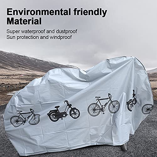 - حماية شاملة غطاء دراجة كبير بما يكفي لتثبيت الدراجة بإحكام في مكانها. قم بتغطية الدراجة من الأعلى إلى الأسفل، بما في ذلك العجلات والدواسات وأجراس الدراجة لتوفير حماية شاملة.
