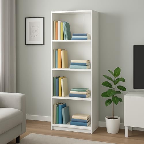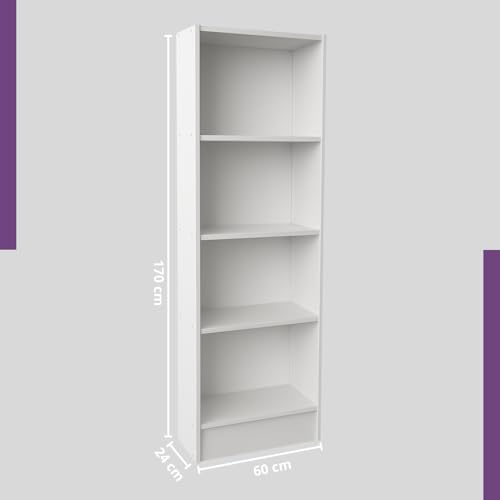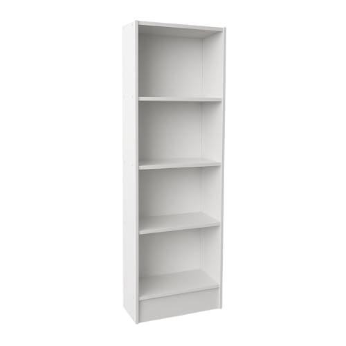 eacommerce - خزانة كتب من خشب الميلامين من ايكوميرس | 4 رفوف عمودية للكتب والأشياء | سهلة التجميع | قوية ومتينة، 60 × 24 × 170 سم ارتفاع - أبيض