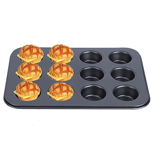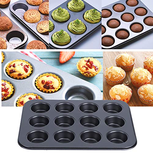 Homepatche - صينية مكونة من 12 فتحة دائرية - قالب غير لاصق لخبز المافن وكب كيك وتشيز متعددة - أدوات طبخ أسود هومباتشي