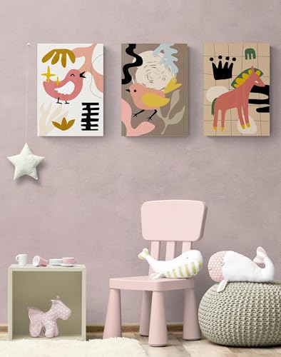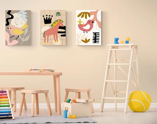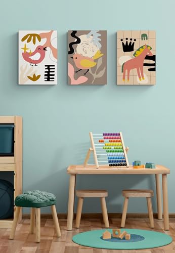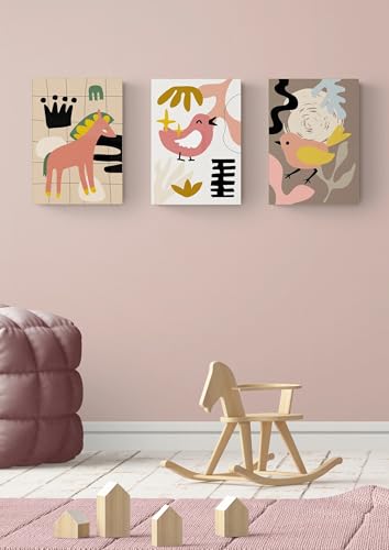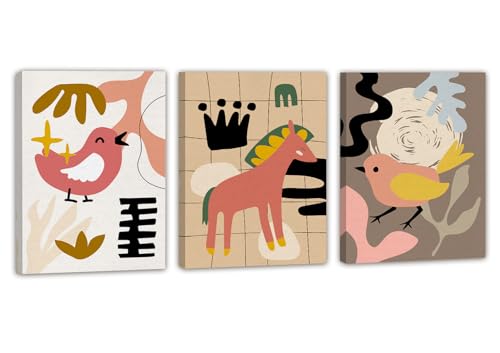 EAHunt - ديكور حائط للاطفال من اي ايه هانت 3 قطع القماش بتصميم حيوانات وطيور وحصان بطباعة صورة للاولاد والبنات للفصول الدراسية وغرفة الاطفال النوم وحضانة الصغار اعمال فنية متعدد الألوان