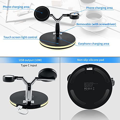 - 【مصباح ليلي صغير】 يوجد ضوء أسفل قاعدة الشحن. مصباح ليد قابل للتعتيم بمستويين لراحة العين. يمكن لمفتاح اللمس الذكي بإضاءة ليد الليلية في منتصف محطة الشحن التحكم في سطوع الضوء. يمكنك اللمس برفق لضبط سطوع الضوء أو تشغيل/إيقاف التشغيل قبل النوم. يخفي الكابلات الزائدة ويوفر المساحة ويجعل مكتبك أو طاولة السرير مرتبة ومنظمة.