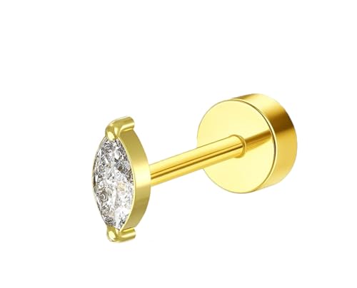 BIJOUX BEAUTIQUE - اقراط اذن بيضاوية الشكل بجزء خلفي مسطح من الاذن، مجوهرات بيرسينج - ابيض، ذهبي