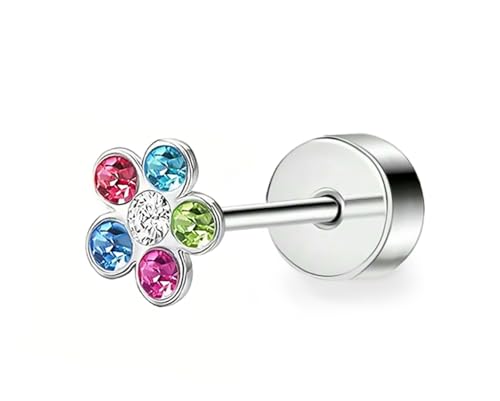BIJOUX BEAUTIQUE - اقراط اذن ملونة بتلات زهور مسطحة الظهر - فضي