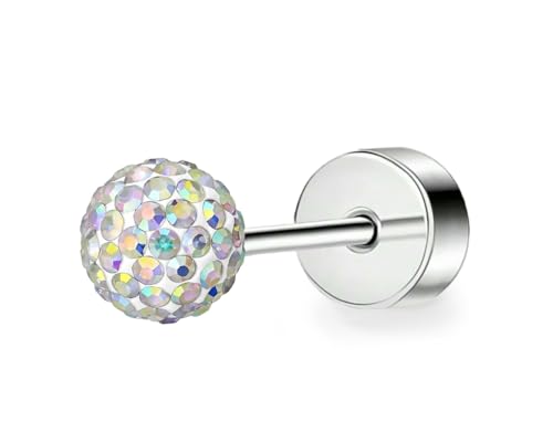 BIJOUX BEAUTIQUE - اقراط اذن مرصعة بكرات مسطحة الظهر - اورورا، فضي