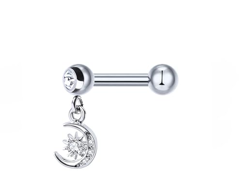 BIJOUX BEAUTIQUE - حلق متدلي على شكل هلال مرصع بالاذن، مجوهرات بيرسينج - ابيض، فضي