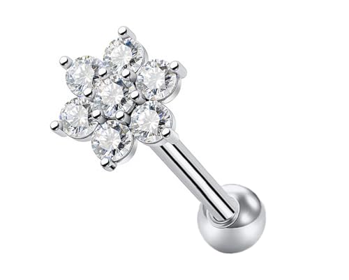 BIJOUX BEAUTIQUE - مجوهرات بيرسينج على شكل كرة مرصعة باحجار كريمة على شكل زهرة - ابيض، فضي