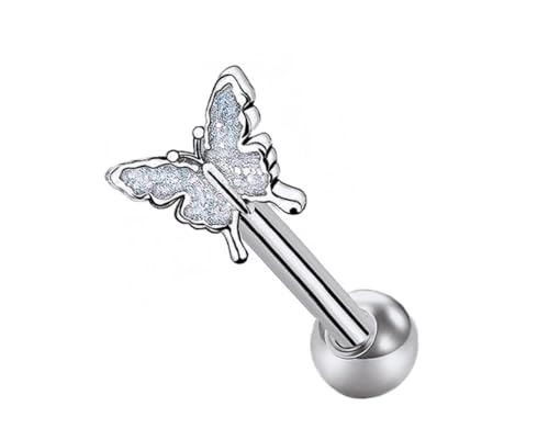 BIJOUX BEAUTIQUE - حلقان أذن لامعة على شكل فراشة وكرة، مجوهرات ثقب، أبيض، فضي