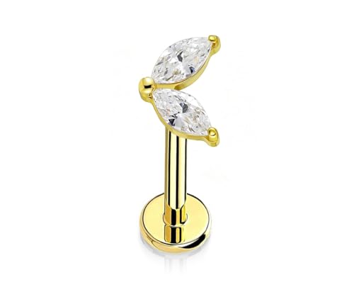 BIJOUX BEAUTIQUE - مجوهرات بيرسينج بتلات مزدوجة من الاحجار الكريمة للاذن/الشفاه - ابيض، ذهبي