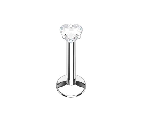 BIJOUX BEAUTIQUE - حلق بريمة على شكل قلب مرصع باحجار كريمة للاذن/الشفاه - ابيض، فضي