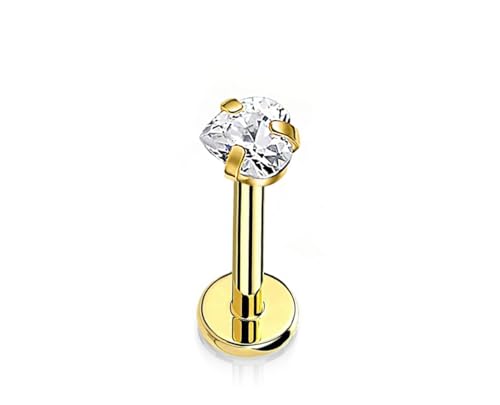 BIJOUX BEAUTIQUE - مجوهرات بيرسينج على شكل قلب مرصع بالأحجار الكريمة للاذن/الشفاه - ابيض وذهبي