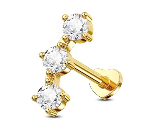 BIJOUX BEAUTIQUE - حلق بريمة على شكل هلال ثلاثي الاحجار الكريمة بظهر مسطح - ابيض، ذهبي