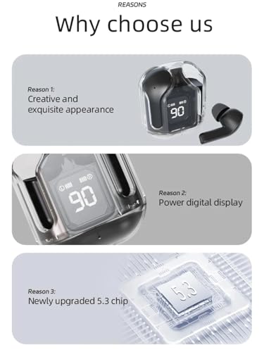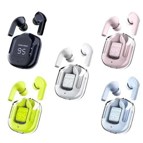عام - سماعات أذن لاسلكية الترا بودز ماكس، سماعات أذن بسلك شفافة مع صوت باس عميق وصوت ستيريو، سماعة بلوتوث مع علبة شحن، أبيض، أسود ووردي (أسود)