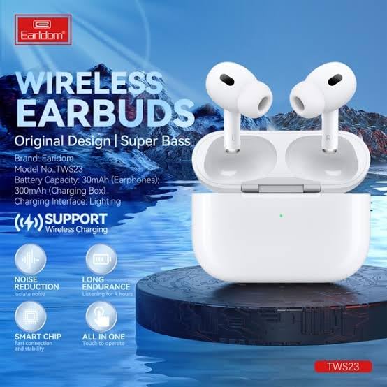 Generic - سماعات أذن ترو لاسلكية Earldoom TWS23 الجيل الثاني مع علبة شحن مغناطيسية , متطورة بخاصية إلغاء الضوضاء ANC/ENC، علبة شحن ذكية سماعات راس بلوتوث 5.4 اي ان سي وميكروفونات بصوت قوي ، ابيض