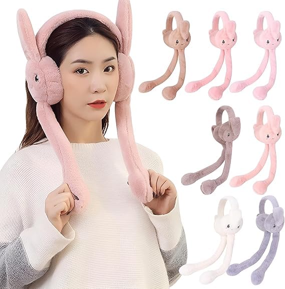 Generic - غطاء اذن - غطاء اذن من الفرو الصناعي المنفوش بتصميم ارنب رائع، بطانة مخملية ناعمة قد تختلف الالوان والاشكال