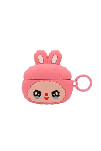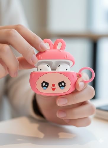 Generic - حافظة سماعات ، تصميم أرنب كرتوني ثلاثي الأبعاد، غطاء سيليكون مع حلقة مفاتيح، متوفر باللونين الوردي والبنفسجي (بينك)