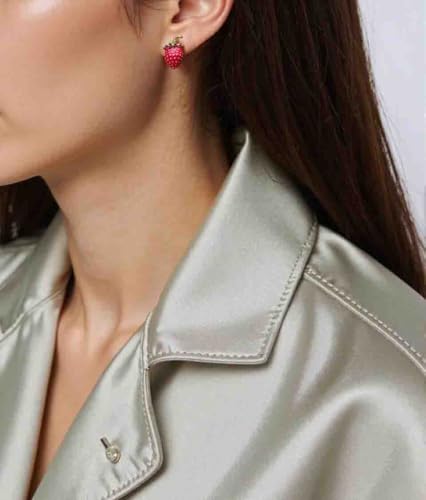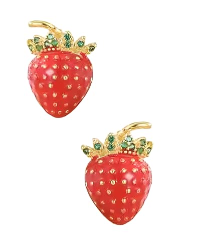 Generic - حلق مرصع بفراولة حمراء ومرصع بالزركونيا المكعب الأخضر على شكل فاكهة حمراء لطيفة للنساء - فولاذ مقاوم للصدأ مطلي بالذهب عيار 18 قيراط