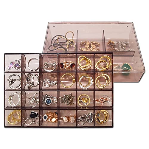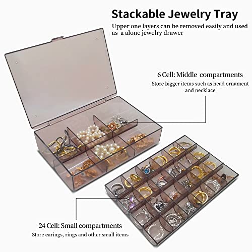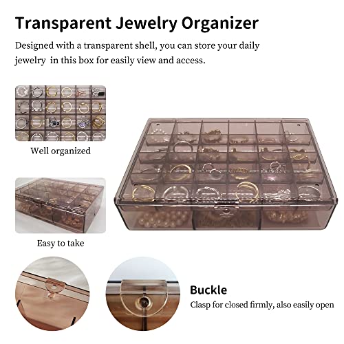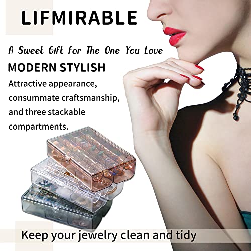 Lifmirable - منظم اقراط ومجوهرات شفاف الاكريليك من طبقتين مع صينية ديموجر و30 قسما مختلفا جويروس منتسب لهدايا الناسء والسفر، لايفمرابل، بلاستيك، ألومنيوم، أكريليك