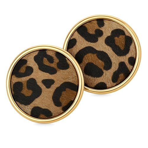 Generic - اقراط - نمط طباعة جلد الفهد الجريء يتميز بفرو طبيعي ولمسة نهائية ذهبية اللون، دائري 26 ملم لمظهر عصري