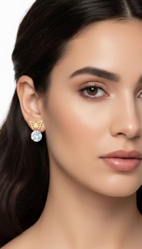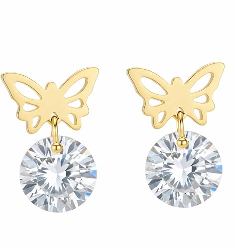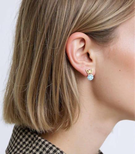 Generic - اقراط على شكل فراشة مرصعة بالكريستال بتصميم عصري للنساء والزوجة والحبيب وافراد العائلة والاخت الصالحة - ستانلس ستيل مطلي بالذهب عيار 18 قيراط