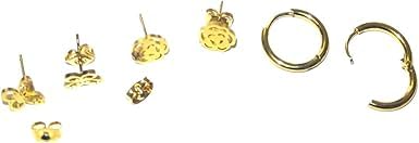 Generic - حلق حريمي أطواق صغيرة فضية اللون بها فصوص - 3 ازواج - استيل معدن متعدد الألوان للنساء