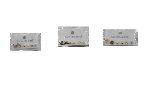 Generic - أقراط نسائية من الاستانليس المقاوم للصدأ لون ذهبي 3 قطع اشكال مختلفه