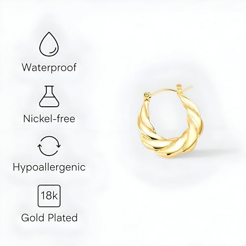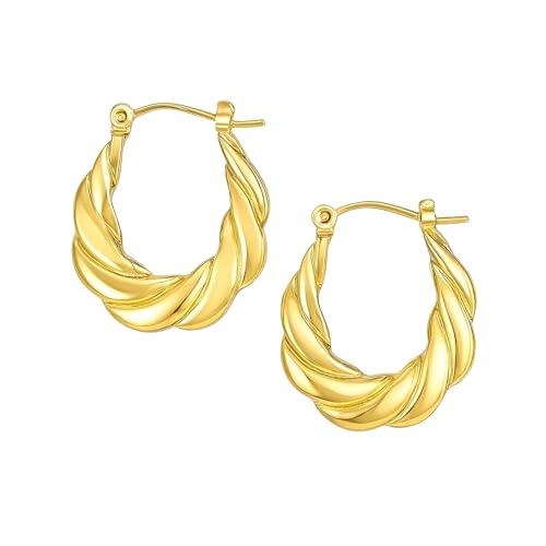 Generic - اقراط - اقراط ذهبية اللون مضادة للبهتان بتصميم هندسي مكتنز لمظهر انيق