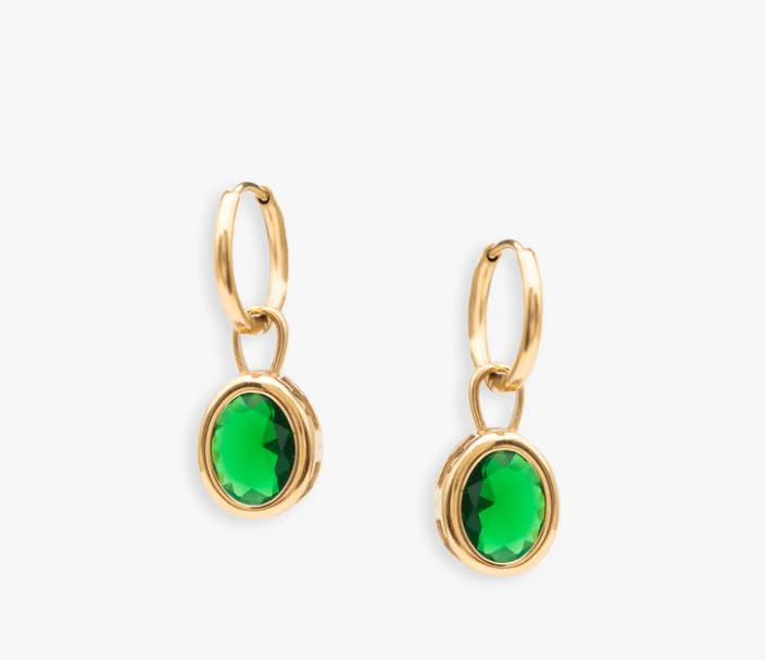 Generic - حلقان مرصعة بأحجار كريمة دائرية خضراء على قاعدة حجر بلون ذهبي مع سلسلة 45 سم
