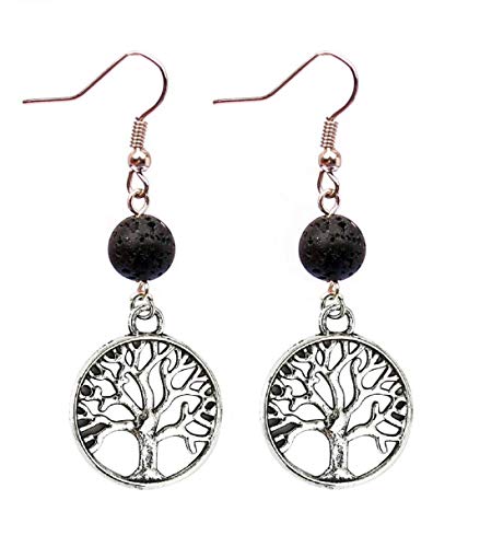 Other - أقراط شجرة الحياة مع الحجر البركاني الاسود، معدن، متعدد الألوان، للنساء