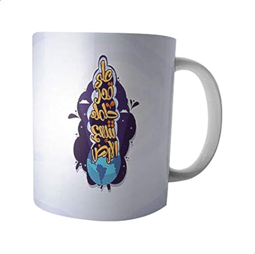 Other - مج سيراميك مطبوع بعابرة عربية مع تصميم كوكب الأرض - متعدد الألوان