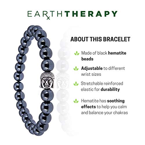 Earth Therapy - سوار خرز بودا الاصلي مع حجر الدم الروحي العلاجي - بمقاس قابل للتعديل للنساء والرجال وممارسة اليوجا علاج الارض 1 Count Pack of 1 الهيماتايت