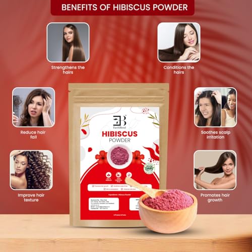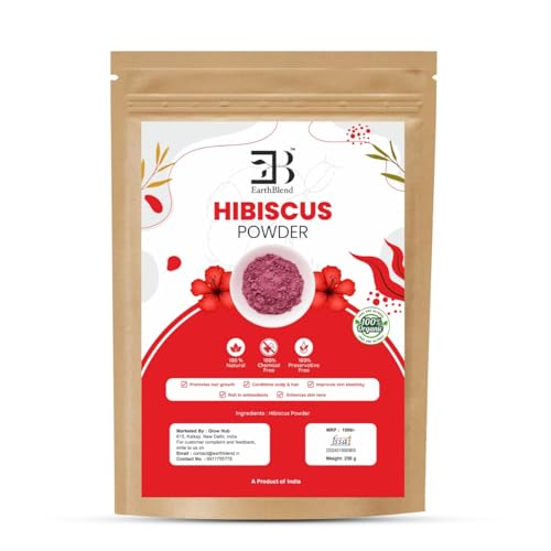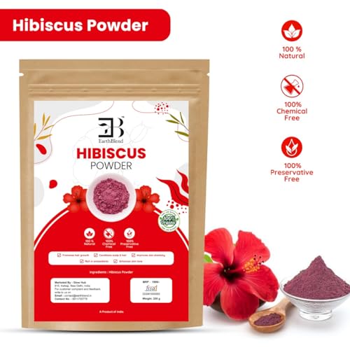 EarthBlend - مسحوق الكركديه من ايرث بليند - طبيعي وعضوي 100% مثالي لنمو الشعر مستخلص نبات عالي الجودة 250 غرام