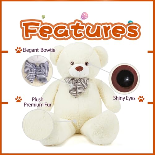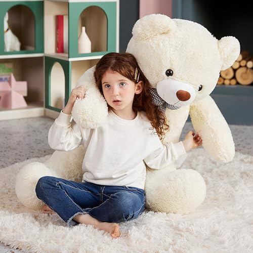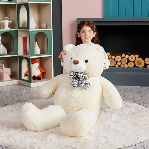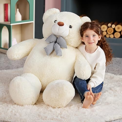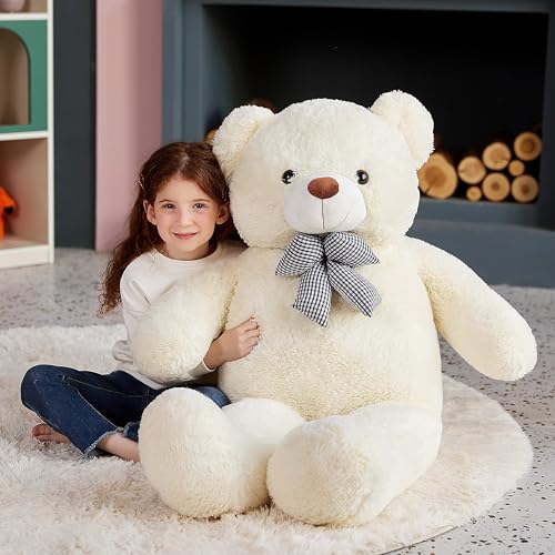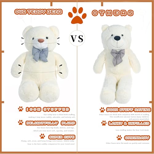 EARTHSOUND - ايرث ساوند دب تيدي كبير من القطيفة العملاقة - كبيرة الحجم الطبيعي كبيرة الحجم حيوانات لطيفة من الدببة السمينة كبيرة الحجم - هدايا للاطفال البنات والأولاد (أبيض، 120 سم)