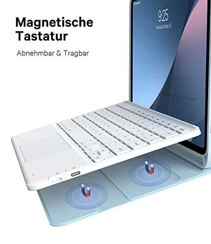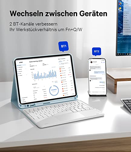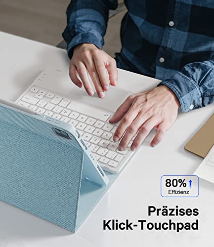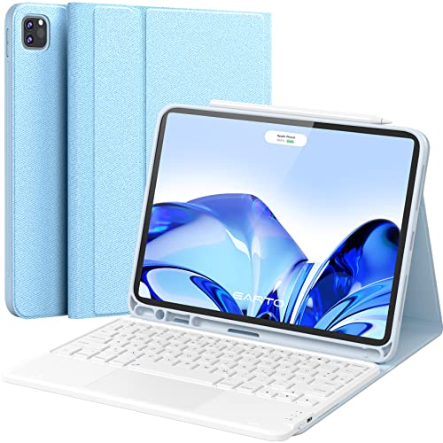 Earto - حافظة ايباد اير 2022 مع لوحة مفاتيح من ايارتو تعمل باللمس وقناتين بلوتوث وكيبورد نوع كويرتي قابل لإعادة الشحن عبر منفذ C لايباد 5-4 10.9 2022-2020 وايباد برو 11 الجيل أزرق