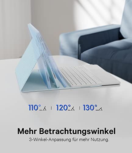 - حافظة لوحة مفاتيح مغناطيسية قابلة للإزالة: التصميم قابل للإزالة، مما يعني أنه يمكن استخدام لوحة المفاتيح أو الحافظة بمفردها. يمكن للتأثير المغناطيسي تثبيت الكيبورد عند الكتابة. يحتوي الجراب على 3 فتحات بطاقات مدمجة تدعم زوايا 110 درجة و120 درجة و130 درجة، ويمكنك ضبط زاوية الرؤية للحصول على زاوية رؤية أكثر راحة.