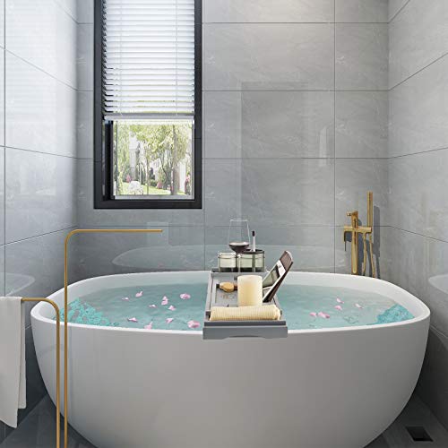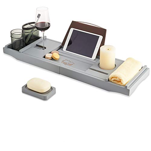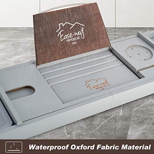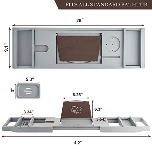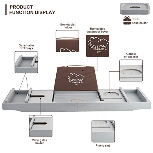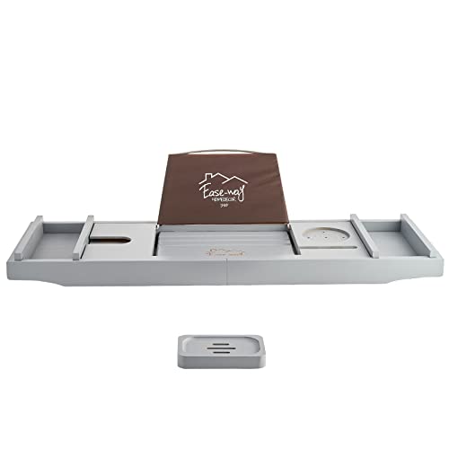 EASE-WAY - صينية حوض استحمام من البامبو، صينية خشب للحوض مزودة بحامل للكتب وصبانة، يمكنها حمل الموبايل واللاب توب، منظم قابل للتمديد لحوض الاستحمام، مناسبة لتجربة سبا من ايزي واي، لون رمادي