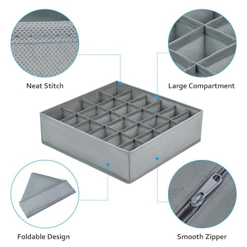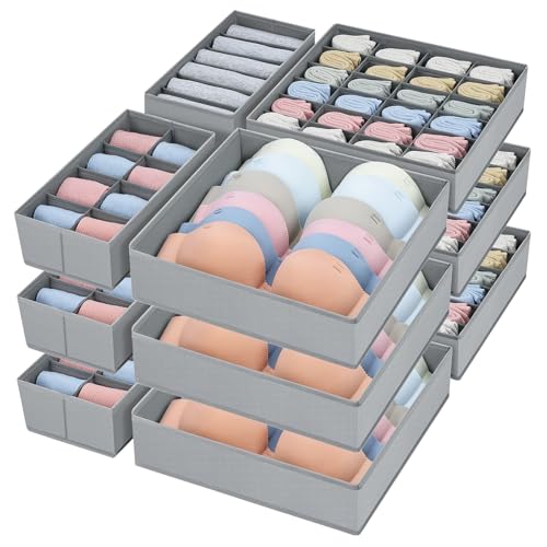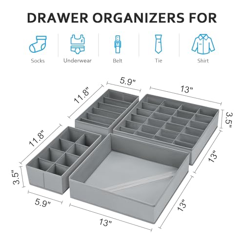 Easortm - منظم أدراج للملابس لتنظيم أغراضك قابل للطي يسهل تخزينه عند عدم الحاجة، لترتيب الملابس الداخلية، الجوارب، حمالات الصدر، وربطات العنق داخل الأدراج من ايزورتم، 12/ العبوة، رمادي