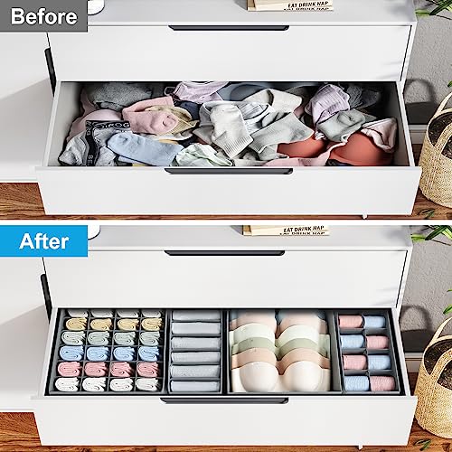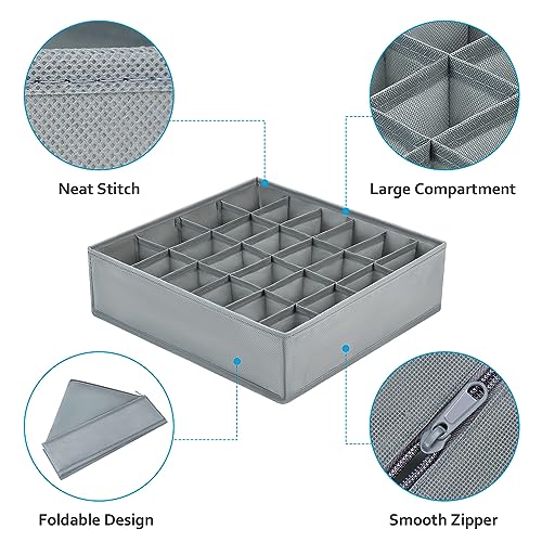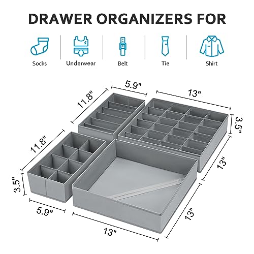 Easortm - منظمات أدراج للملابس والشرابات والملابس الداخلية من ايزورتم، منظم أدراج دواليب الملابس، منظمات دواليب وصناديق تخزين لحمالات الصدر والشرابات والملابس الداخلية والكرافتات، مجموعة من 4 قطع، لون رمادي