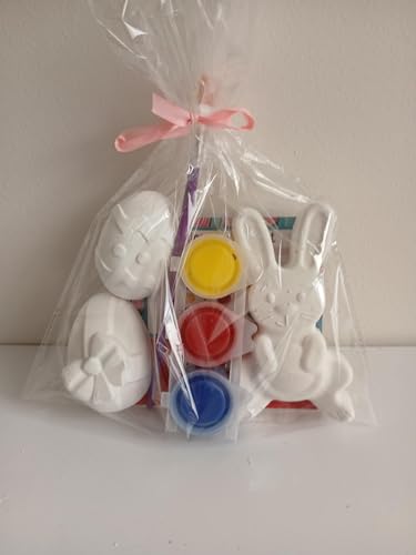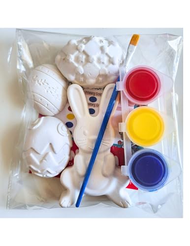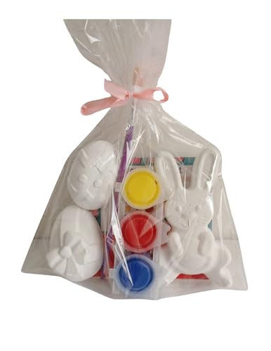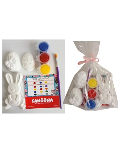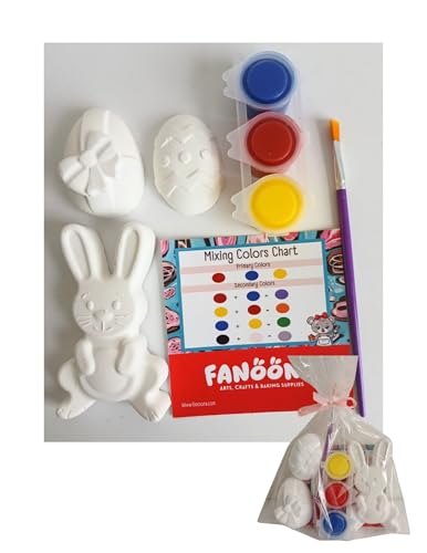 Generic - مجموعة رسم لعيد الفصح على شكل جص مع فرشاة وألوان اكريليك ومخطط مزج ألوان للأطفال (أرنب وبيض)